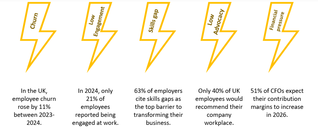 There are increasing pressures in the workplace – employee churn, skills gaps, low motivation, costs pressures.